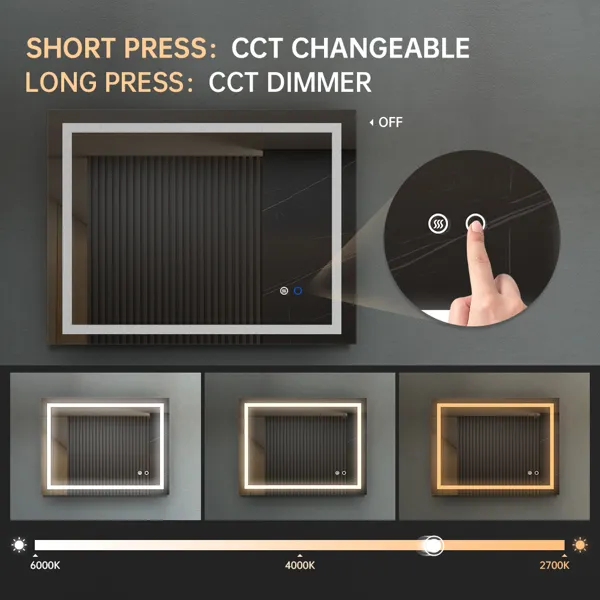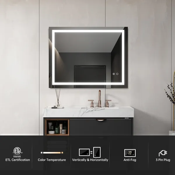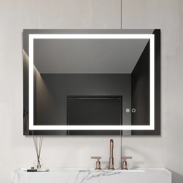 LED Mirror with Touch Buttons control, Anti-Fog LED bathroom Vanity Mirror