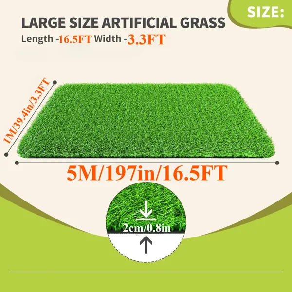 1. This premium artificial turf mat measures 3ft x 16ft, providing a large area coverage for various uses.