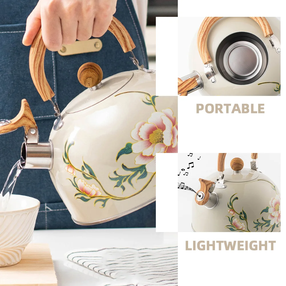 Elevate your kitchen with a stainless steel water kettle featuring a graceful decorative floral pattern. Built for longevity, this kettle delivers rapid heating, ample capacity, and easy maintenance. The ergonomic handle, secure lid, and watermark-free finish ensure safe and convenient pouring. Ideal for families, offices, and entertaining—perfect for WoWeGO Stores.