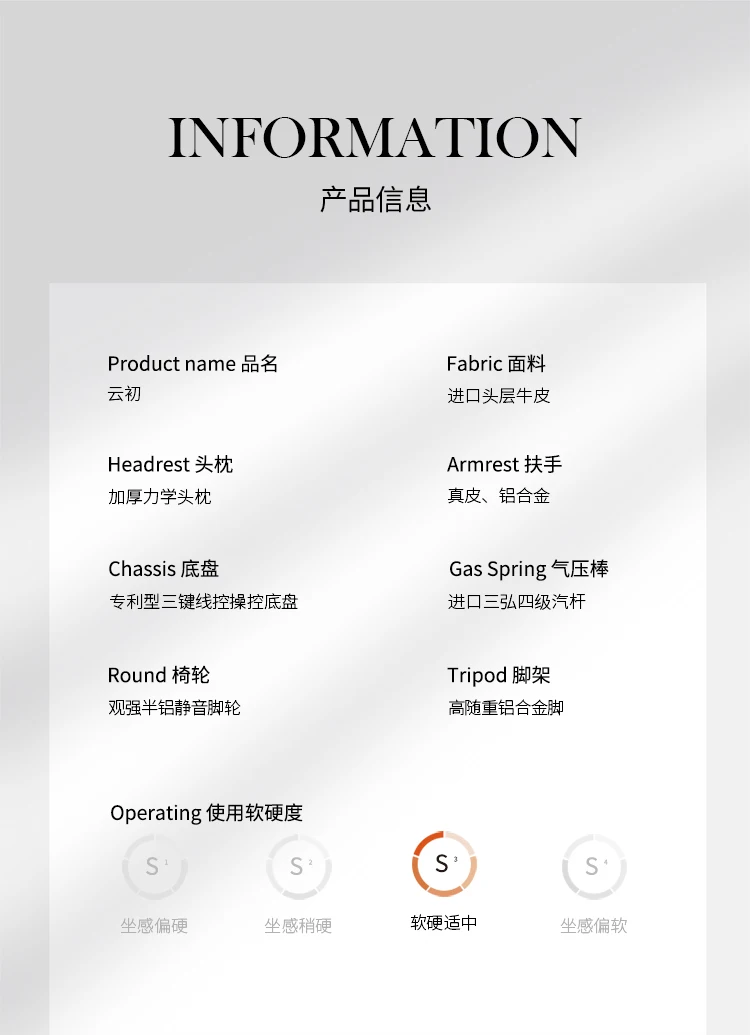 - Five-star foot material : Aluminum alloy feet